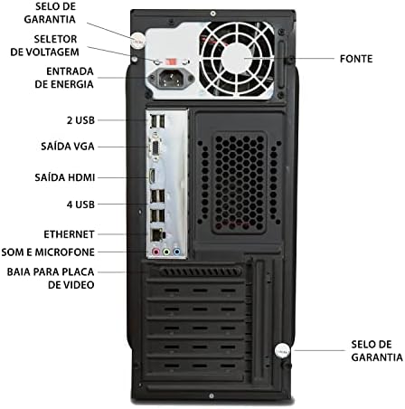 Nosso computador oferece uma variedade de conexões para garantir que você esteja sempre conectado e pronto para qualquer tarefa. Com portas HDMI, USB 2.0, RJ-45, VGA e entradas separadas para fone de ouvido e microfone, você terá todas as opções à sua disposição.